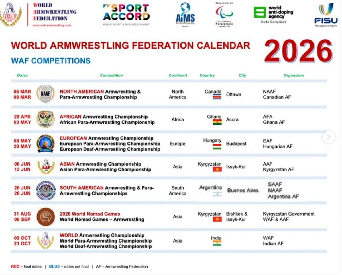 El calendario está formado conforme al grupo de organizadores nacionales y el mes de competencia. Más detalles sobre fechas exactas e información del evento será publicado por la debida organización.